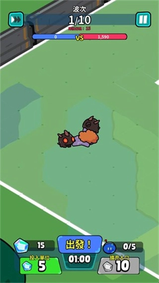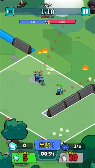 3、把小兵布置妥当后,点击出发按钮,小兵就会自动攻击出现的敌人。