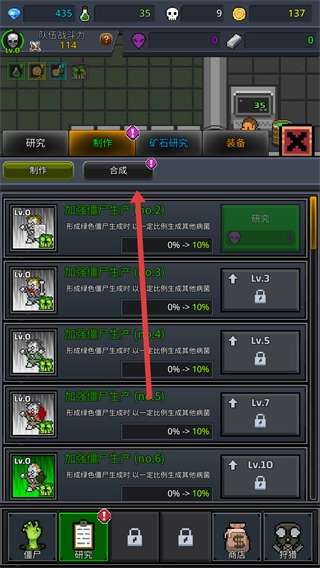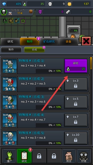4、切换到合成分类,挑选特殊技术项目,推动合成能力的提升。