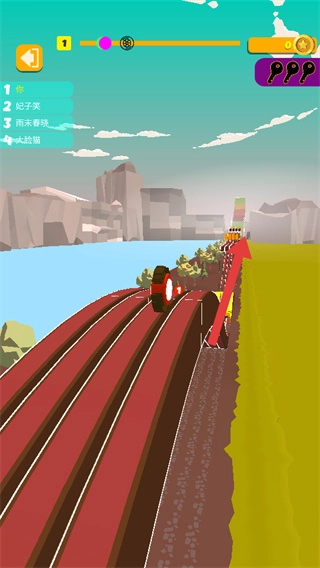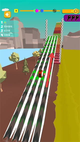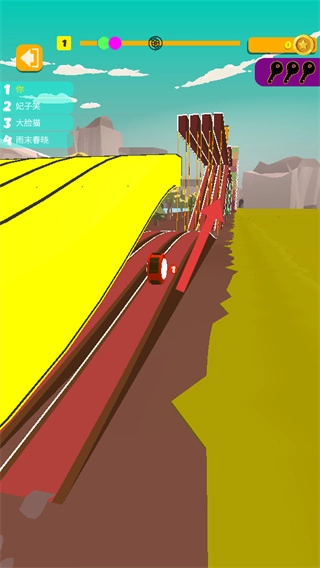 3、面对黄色坡道这类特殊地形时,需掌控好节奏以顺利通过,同时持续与对手展开速度较量。