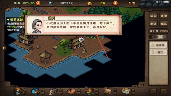 3、与【范氏】对话得知南阳镇东庄村有对小两口,可前往该地打听相关线索推进任务。