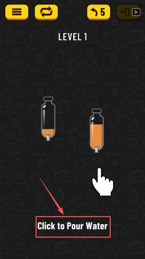 3、点击倒水操作:根据屏幕上“Click to Pour Water”的提示,把容器内的水位调节到目标刻度线位置。