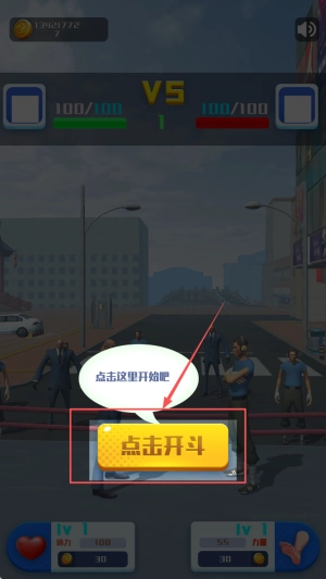 2、开始对战:进入对战准备界面后,点击“点击开斗”按钮,开始与对手的斗鸡比赛。