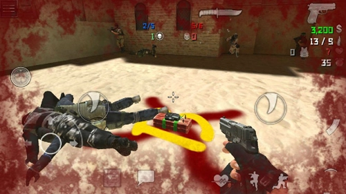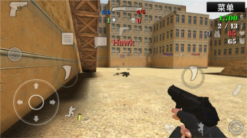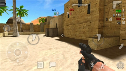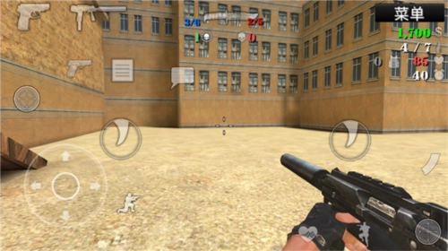 3、进入游戏后,操作十分简单。左侧负责方向控制、下蹲、购买等功能,右侧对应攻击操作;不过实际上左右两侧都能进行攻击,大家可以根据自己的操作习惯自由选择。