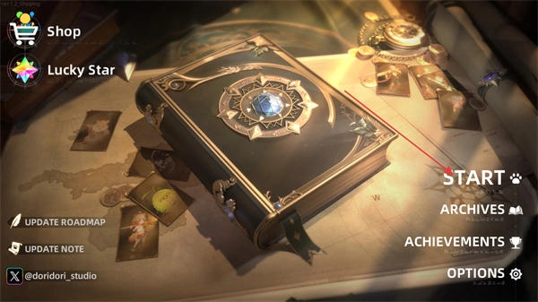 1、这是游戏的主界面,包含商店、幸运星抽奖等功能入口,点击右侧的START按钮可进入游戏准备环节。