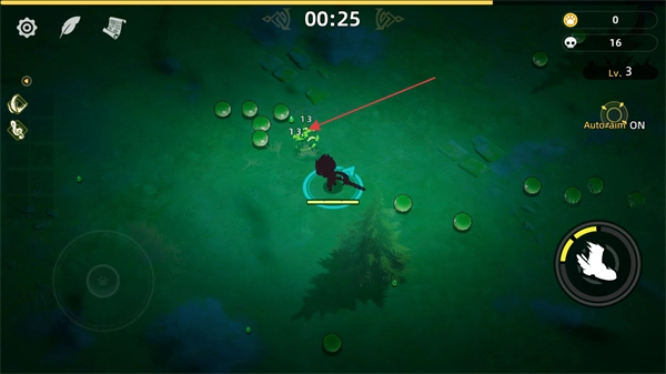3、此为战斗场景界面,可通过操控底部的移动区域来控制角色的走位,点击技能按钮即可释放技能,攻击场景内的怪物能够积累击杀数量并提升等级。