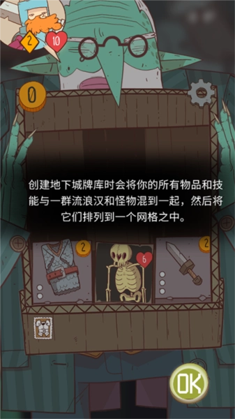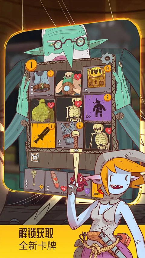 - 卡牌有物品、技能及怪物,击败怪物获金币,用于购买。