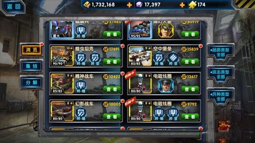 装备系统作为游戏第二大的成长系统,提供了非常强悍的属性加成。一件普通的装备,也可以通过各种升级操作让它变得异常强大。装备分为4种适应类型:装甲单位、步兵单位、飞行单位、建筑单位,每个装备都可以适应