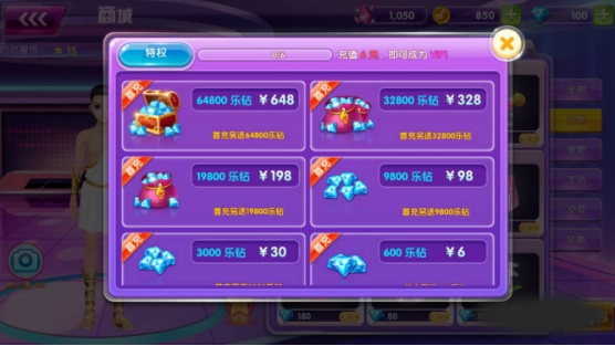 5、如果乐币或乐钻不足则会弹出充值界面,方便玩家进行充值