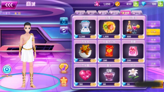 2、道具包括跳舞、交互、礼物、活动、图纸、其他等类别