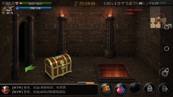 3、22层初始点也忘截图了~下一层肯定记得~~还是从黑点出发,出门左转,再左转,往前走,连续三个空格百分之九十九是死胡同,这时候就该掉头换路,我继续走是为了给大家验证,嗯 没错 确实是死胡同。掉头后是个丁字路口,注意又到知识点啦!碰到丁字路口,有怪就左转,没怪就直行!这里有怪,我们转弯后顺利打到了boss。