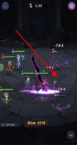 3、进入战斗后角色会自动释放技能,技能释放时会产生特效并造成伤害,同时会显示实时伤害数值,通过累计总伤害来推进战斗进程。