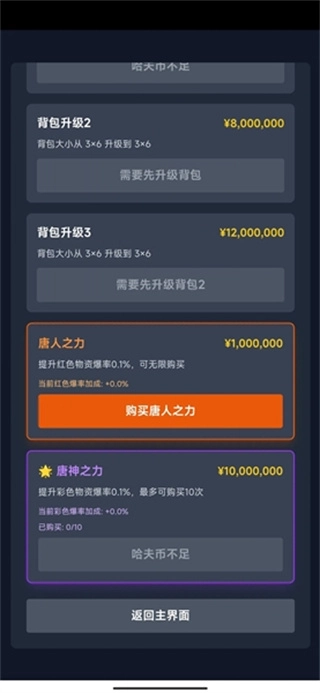 4、哈夫币的用处就是可以用来升级采集,采集的等级越高得到的奖励就会越多。