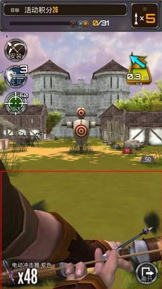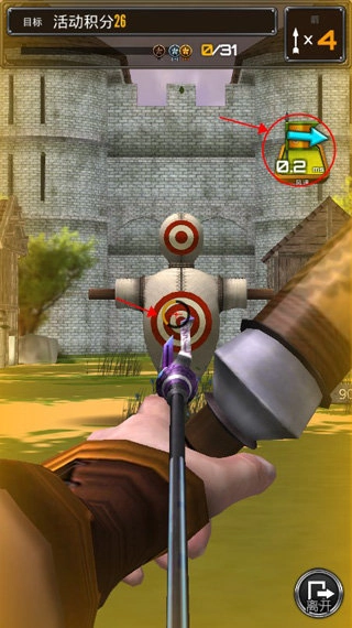 1、在下面红色方框内来拉动弓箭,并进行瞄准射击;