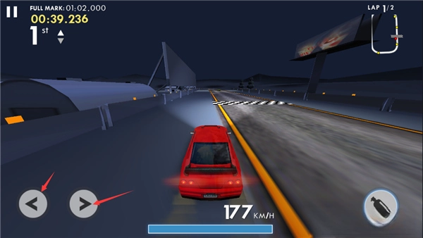 5. 比赛过程中,通过点击屏幕左侧的虚拟按键来控制车辆转向与行驶。