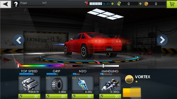 2、车辆改装系统支持你对涡轮、轮胎、氮气容量等细节参数进行调整,从而满足不同赛道的需求。