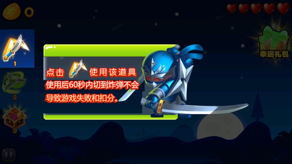 2、道具栏有刀(用了60秒切炸弹不扣分),危险时点击,保分数。