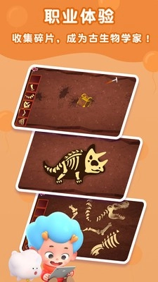-包含寻找化石踪迹、绘制翼龙捕猎路线、拼装恐龙骨架在内的16种教育游戏。