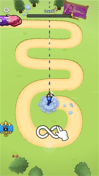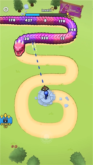 2、成功进入关卡后,玩法十分简单,只需不断用手中的武器攻击蟒蛇即可,滑动屏幕还能调整武器的射击方向;
