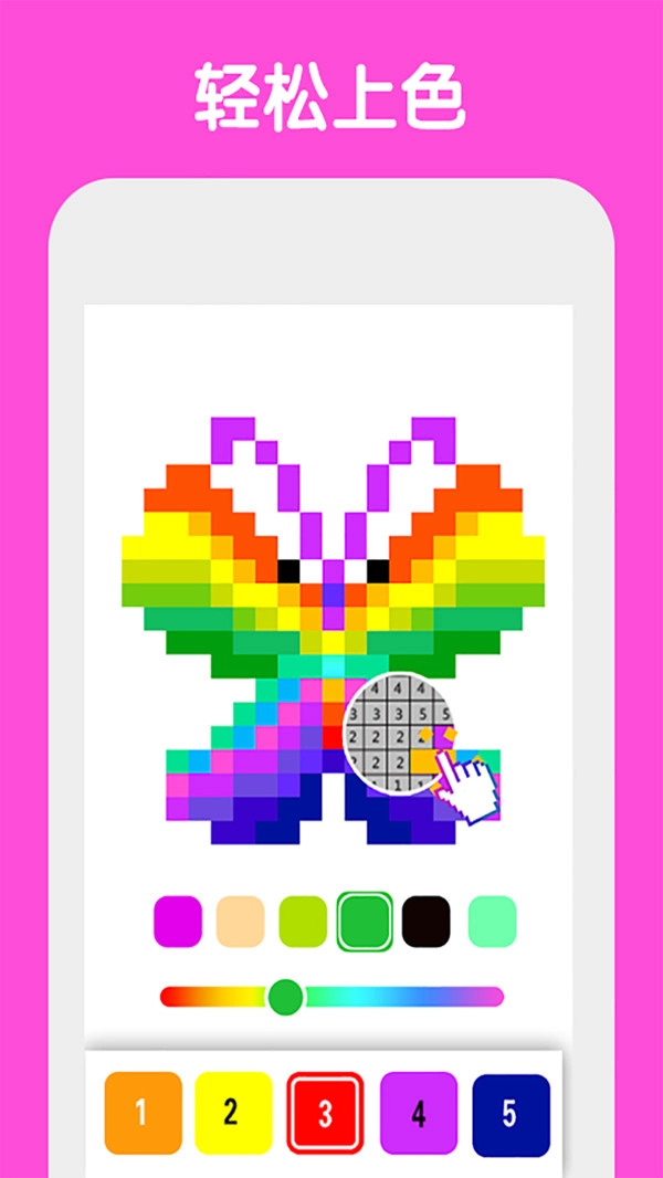 数字填色像素涂色游戏是一款融合像素艺术与数字填色元素的休闲益智类游戏。游戏里,玩家需依据每个像素格上的数字提示,挑选对应的颜色进行填涂,最终完成一幅幅精致的像素画作。游戏拥有丰富多样的图案与主题,从基础的几何图形到复杂的艺术作品一应俱全,能满足不同玩家的需求以及挑战欲。玩家通过逐步解锁不同难度的关卡,既能享受到色彩填充的乐趣,还能体会到创作像素艺术的成就感。
