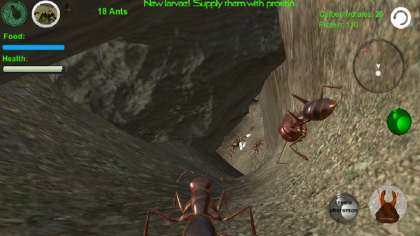 4。游戏开始时,你可以选择族群的规模,并且只能操控其中一只蚂蚁,需要为蚁后寻觅食物。