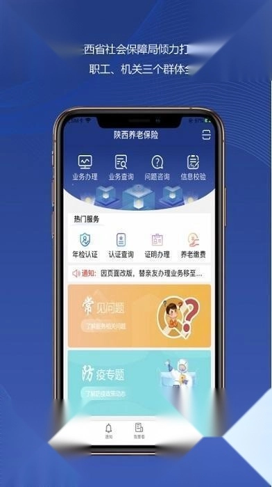 一、本人认证 本人认证需由本人登录陕西养老保险(即陕西社会保险)应用,进入业务办理页面的养老功能模块后,点击【我要认证】选项完成操作。