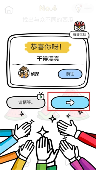 2、点击该按钮进入下一关,继续挑战新的找不同类题目。