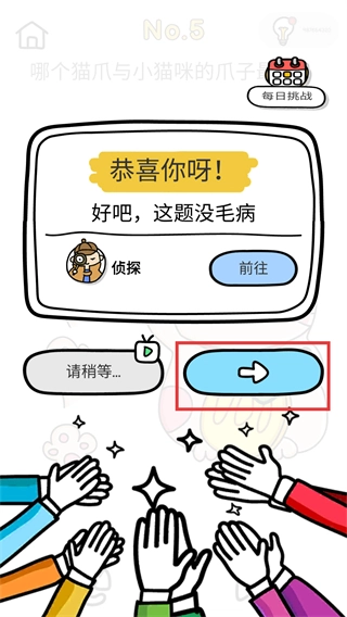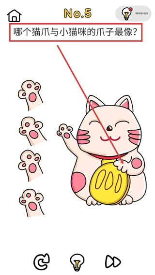 3、在【猫爪匹配】关卡里,留意【小猫】抬起的爪子特点,对照左侧给出的选项,挑选出与之最相像的猫爪并进行点击。