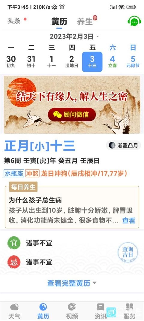 2、点击黄历板块能看今天的日子详情;