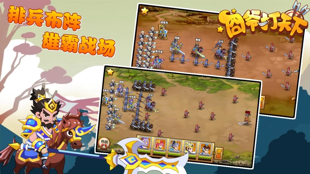 1、战斗中任意布置武将士兵,运筹帷幄,决胜千里!