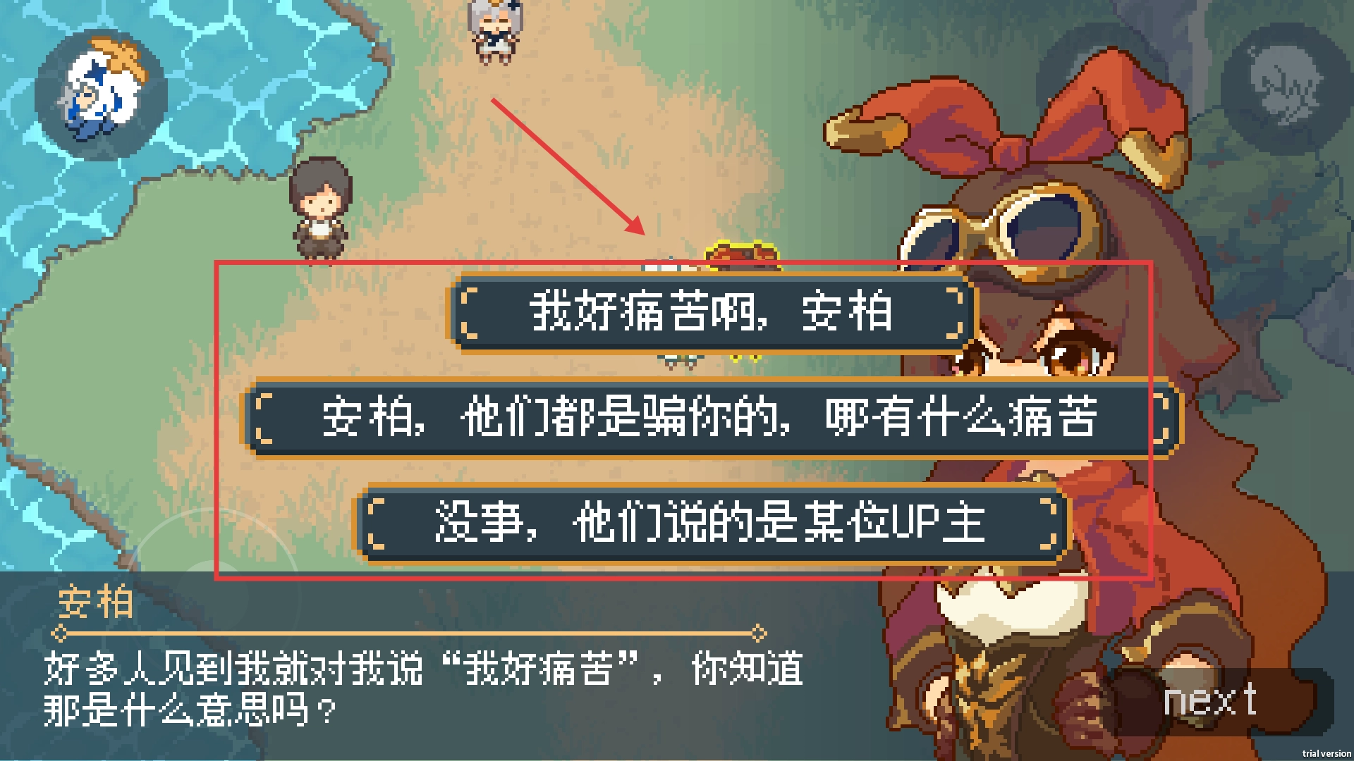 1、和安柏对话时,从提供的选项里挑选恰当的内容来回应,就能顺畅推动当前剧情,开启后续的互动场景。