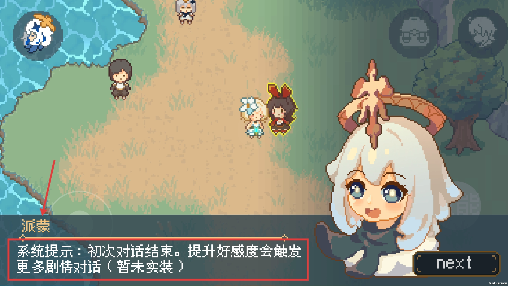 完成初次对话后,系统会给出关于好感度的提示内容,之后可以留意该系统,以此触发更多隐藏剧情。
