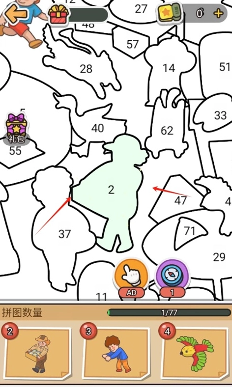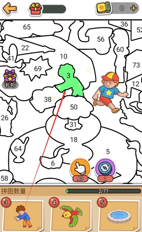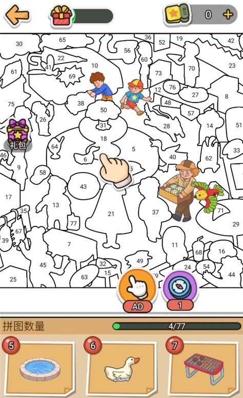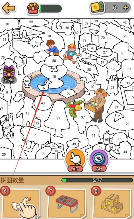 3、点击贴纸:在游玩关卡模式时,点击碎片框内的贴纸,贴纸会以真实大小显示,你可以依据这个大小比例,在图中找到它的大致位置。