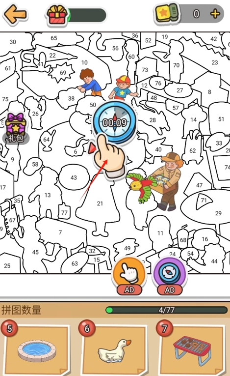 5、合理运用道具。指南针道具的性价比比提示手指高不少;要是手速足够快,指南针能在10秒内帮你搞定多个贴纸。