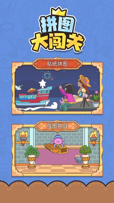 拼图大闯关是一款面向所有年龄段的休闲益智游戏,它把经典拼图玩法和创新闯关模式结合起来,让3岁到99岁的玩家都能在轻松欢乐的氛围里锻炼思维、收获成就感。在这里你可以自由地进行拼图闯关,玩起来特别安逸又充实,尤其是喜欢休闲闯关类游戏的朋友可千万别错过,话不多说,赶紧来试试吧!