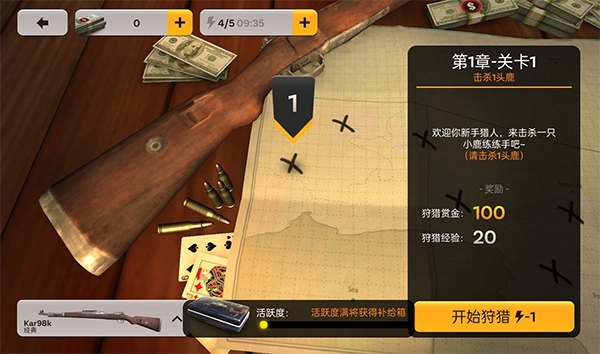 2、点击“开始狩猎”,选择想挑战的关卡与目标动物。