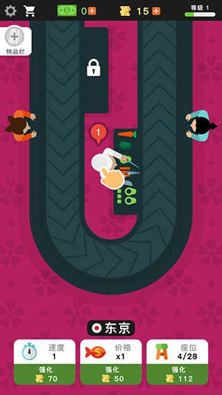 1、进入游戏后,厨师会持续制作寿司,玩家点击厨师就能提升其制作速度。