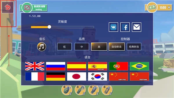 1、第一步,打开未知的像素枪战最新版本,接着点击进入游戏,再点击左上角的设置图标。