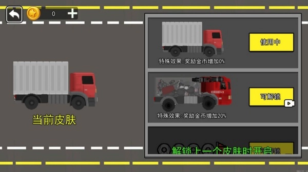 1、从一辆不起眼的小货车起步,在一次次送货与碰撞的过程中积累资源,逐步完成升级,最终驾驭起体型庞大的强力卡车;