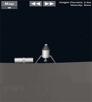 4、接着打开地图查看火箭的轨迹是否接近月球轨道,随后将用完的四个氮气桶分离。