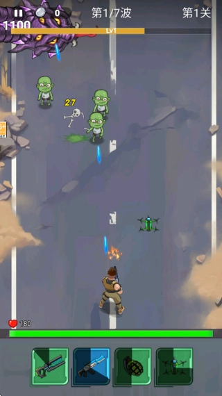 4.战斗开始后,英雄会自动攻击出现的僵尸。成功消灭七波僵尸即可闯关。