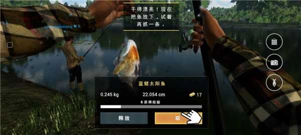 右侧的操作键是用来完成抛投动作的,在找准目标点后轻轻触碰就能释放钓组,而落点的精度会对后续的咬钩概率产生影响。