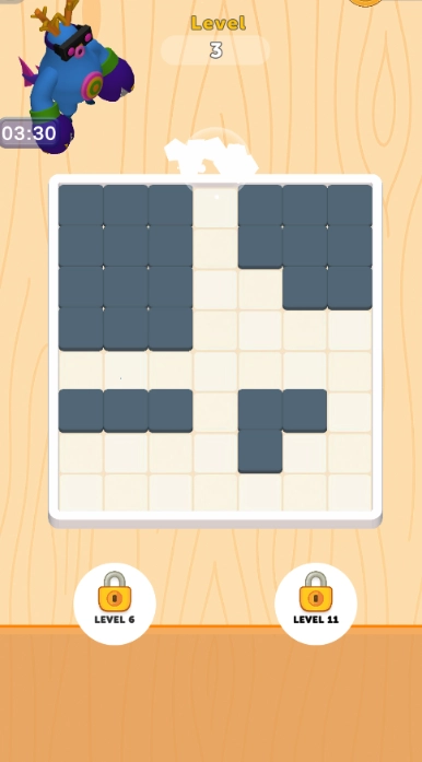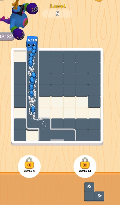 1.铺路消除类玩法,玩家需要拖动方块为零食小人铺设道路,十分考验布局规划能力