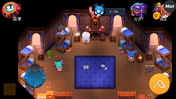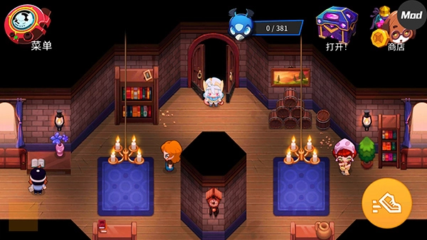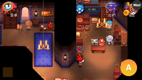 7、如图所示,现在已经进入储藏室了。要是看到发光的物品,你可以走近它并点击行动按钮,一般都能找到有用的东西,有可能是金币、药水,甚至是稀有的宝石。