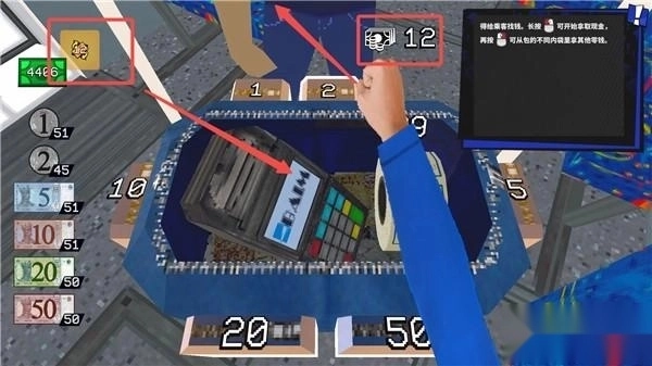 10、需要找零的钱显示在左上角,先左键长按10元的,在右键点击2元的,将找零的钱递给乘客。