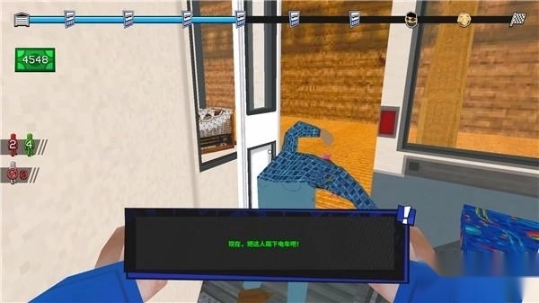 15、按车门旁边的开关打开车门,然后长按右键抓取失去知觉的乘客,将他踢出车内。