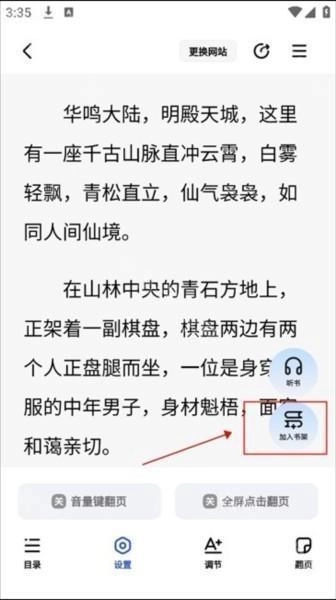4、这时你就可以开启阅读了,点击“加入书架”可方便后续继续阅读。