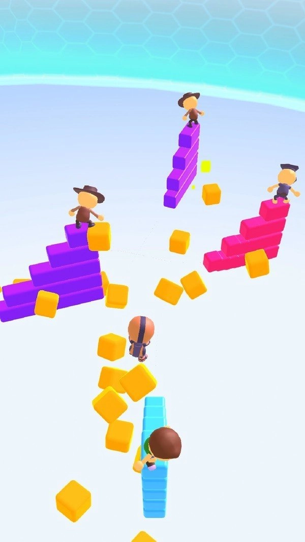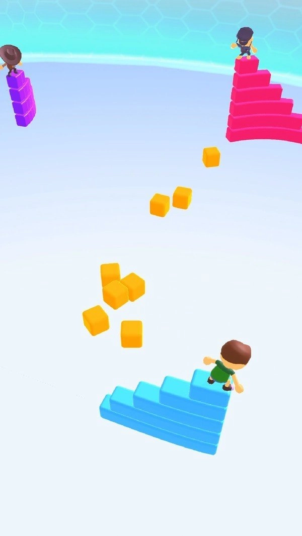 1、玩家既能在竞技场里彼此发起攻击,也能在竞技场中收集和角色颜色一致的砖块;2、画面简约好看,关卡种类多样。玩家得跨越关卡里的一连串障碍,才能取得最终的胜利。