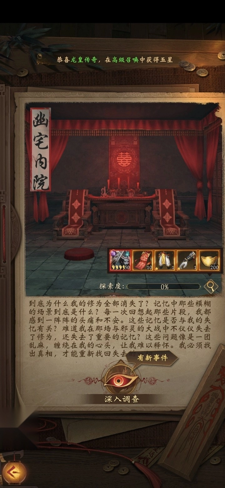 这是一个很有意思的玩法,喜欢鬼神题材的朋友可千万别错过:它有着丰富的剧情和庞大的场景,你可以和NPC互动,一起解密一段段精彩的故事。这个我就先不剧透了,大家自己去体验吧!建议体验的时候戴上耳机,效果会更好哦!对了,探索的过程中是可以控制人物自由走动的,如果碰到引导无法完成的情况,可以尝试移动人物走一段距离后,再点击引导进行自动跑图。