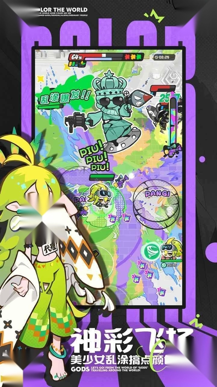 《乱涂彩世界》测试版是一款融合弹幕射击与涂色玩法的游戏,玩家将使用带有色彩的武器击退入侵地球的外星人。游戏采用美漫风格设计,包含众多特色角色,自推出以来便吸引了大量玩家关注。本次为大家带来该游戏的最新测试版本资源。游戏内提供丰富的角色选择,每个角色都有独特的立绘和背景故事,提升好感度后还能解锁专属漫画剧情。感兴趣的玩家不妨立即体验!