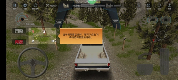 抵达关卡拐角处,按小地图指引操作。前半段有些碎石,建议用一挡通过;后半程是下坡路,没有障碍物,可先把挡位提到二挡并稳住方向,等确保能直线行驶后,再将时速控制调到三挡,在不易翻车的范围内尽量快速到达终点。